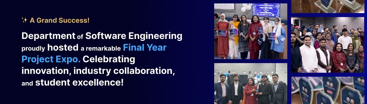 The Department of Software Engineering, NED University, takes pride in being one of the highest ranking departments of the University. It aims to provide quality education and various areas of research, providing in-depth learning of not only tools and techniques for advancements, but skills to build and test proficient software using these technologies, in order to prepare students with the latest emerging fields for various development and research positions in the market or for higher education and to provide solutions to real world problems.